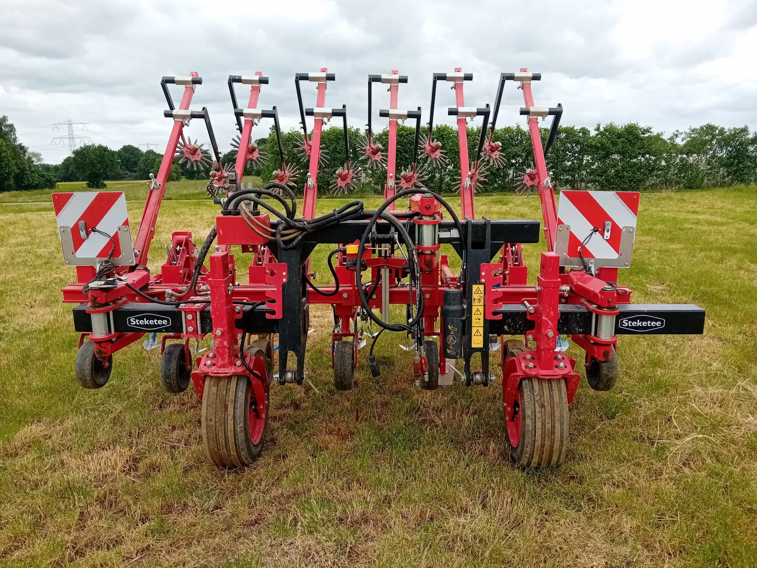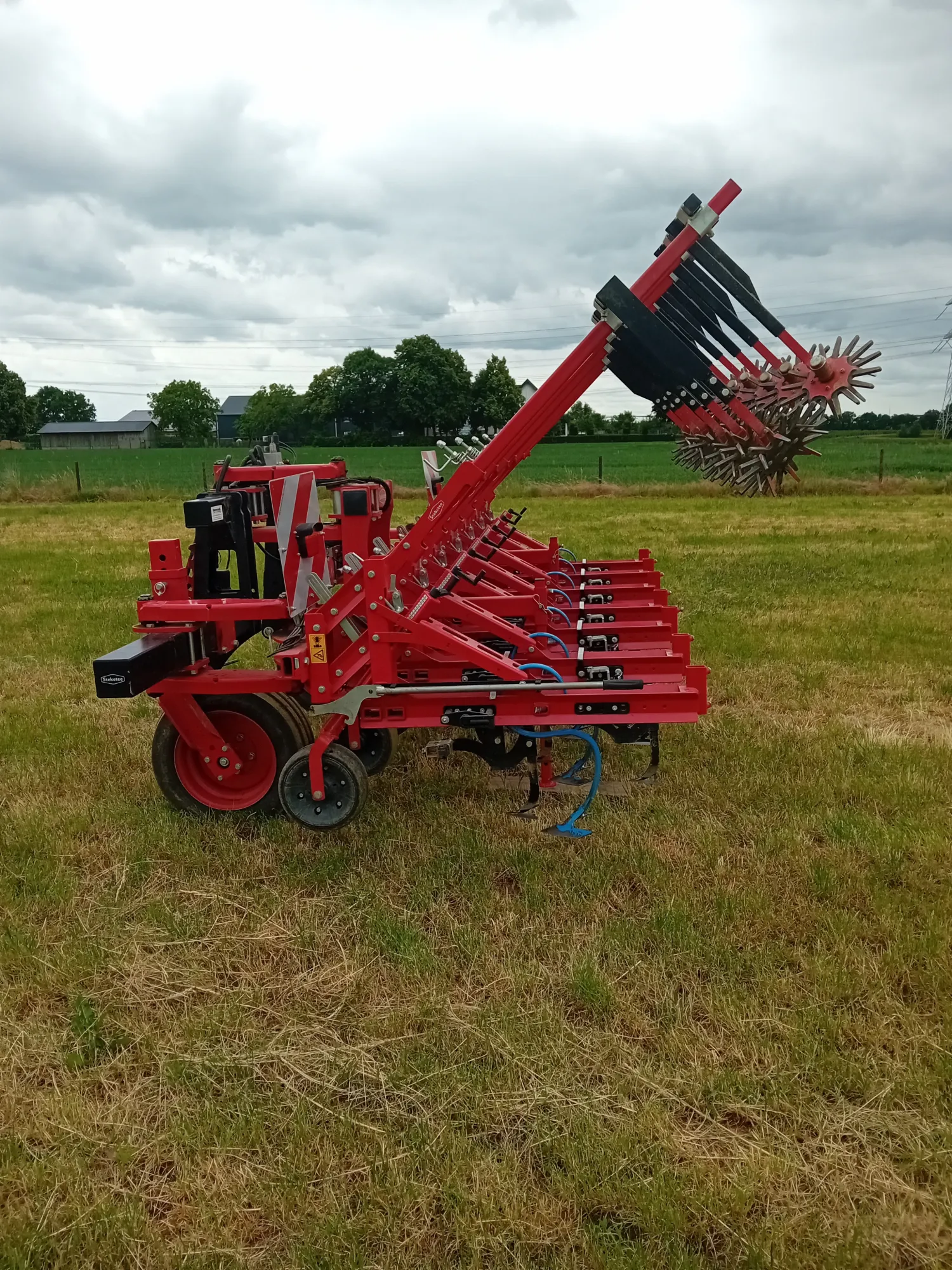 Te koop een jong gebruikte steketee ec weeder camera gestuurde schoffelmachine. 3 m werkbreedte, 6 rijen met 50 cm rijafstand. Zeer compleet uitgerust. Hoekschoffels , Bescherming jonge plant door rijenschijven ( demontabel. ) Uitgerust met vingerwieders. Joystick voor handbediend sturen. Monitor op traktor met steun voor goed overzicht. Zeer eenvoudig breedte en diepte instelling zonder gereedschap door spindels. Reserve schoffels ganzevoet inclusief. Voorzien van verlichting en markeringsplaten . Ca. 100 ha gebruikt. Geschikt voor alle gewassen op 50 cm rijafstand. Onder andere suikerbieten, cichorei, broccoli, bonen. 19.000 Euro. Een kleine prijs voor deze perfect werkende machine.