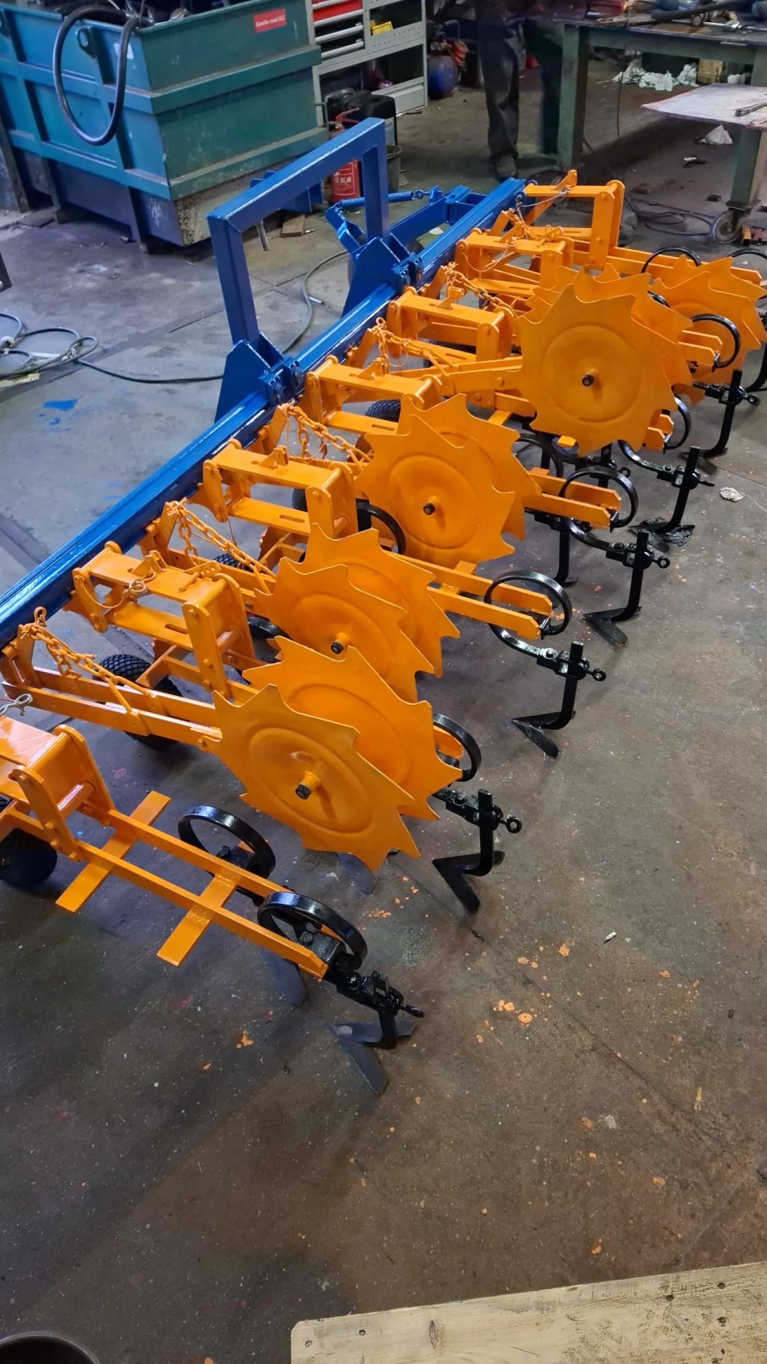 Schmotser Triltand schoffelmachine met stuurschijven 6 rij op 50 cm Geheel nagezien geen speling op Schijven Elementen of loopwielen nieuwe schoffelmessen 16 cm