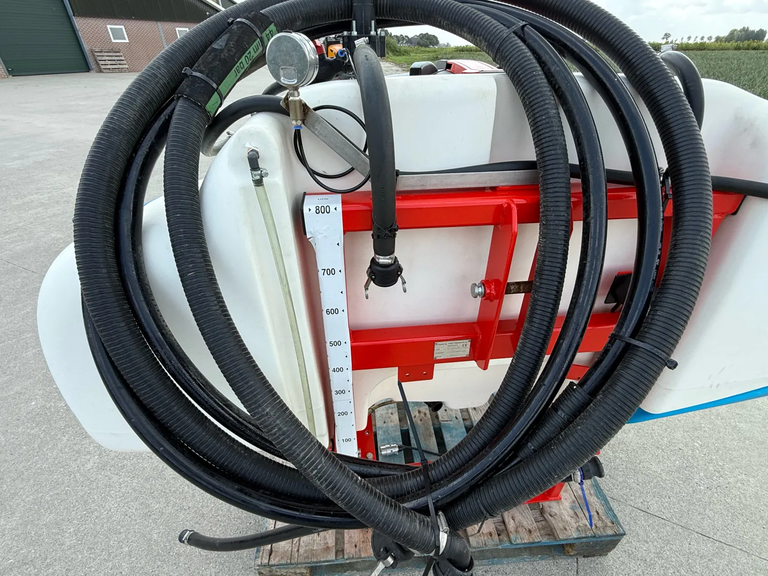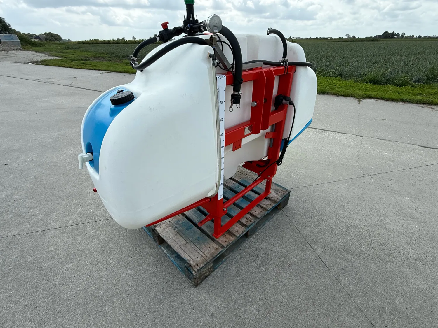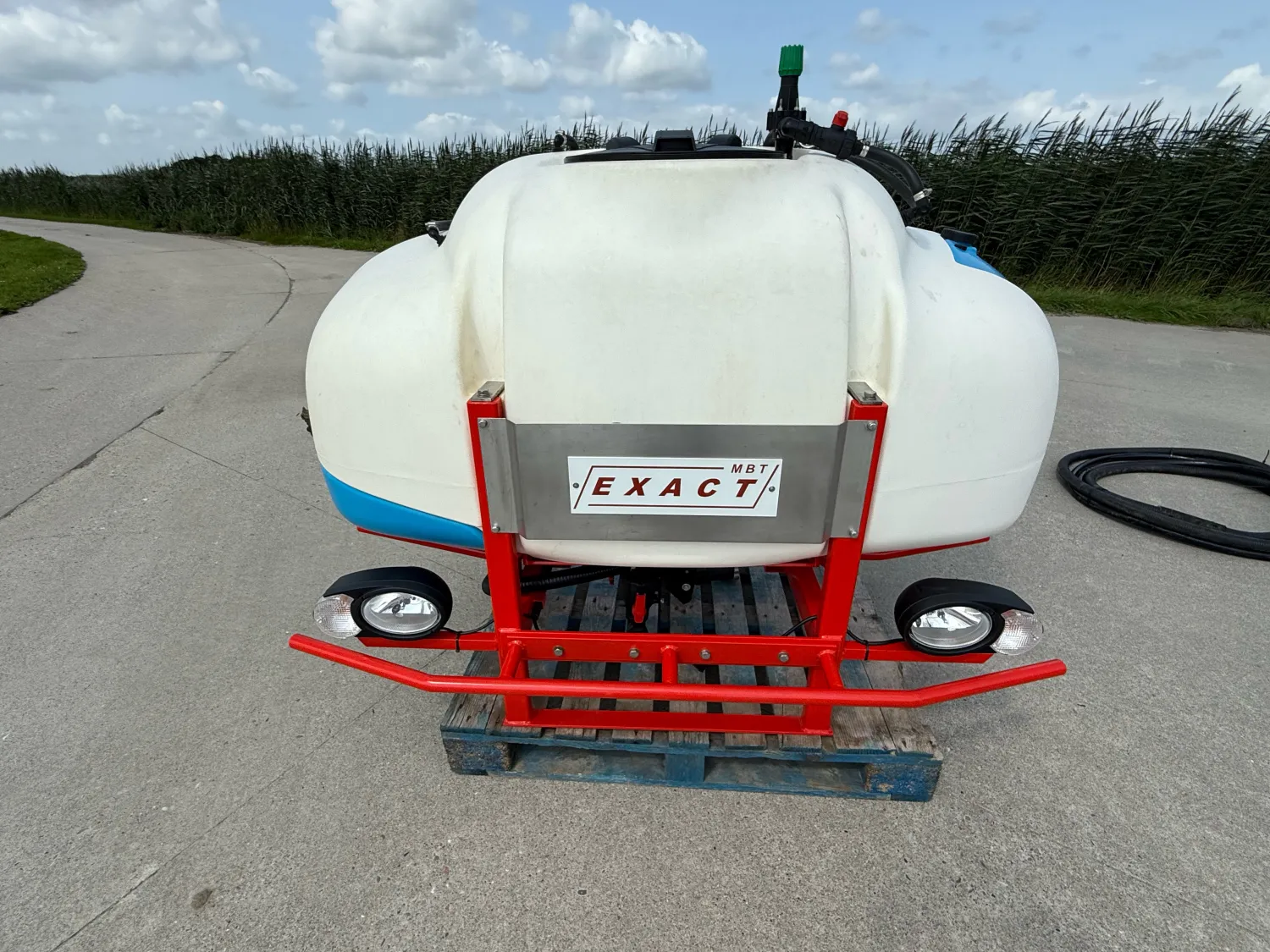 MBT Exact F 800 Fronttank als nieuw Fronttank en doseerunit t.b.v. rijenspuiten met schoffelen in uien en bieten Tank heeft 2 jaar voorin gehangen met schoffelen en is getest met water. 1x heeft er verdunt NTS in gezeten met bietenzaaien, verder NOOIT chemie in gezeten. Er zijn 3 spoelkoppen in de tank gemonteerd, 800l tank, 100l schoon water en 15l handenwastank. met computer, 3 secties. 7 polige stekker in cabine voor pulsen/rij snelheid en sensor er bij voor opbouw op trekker.