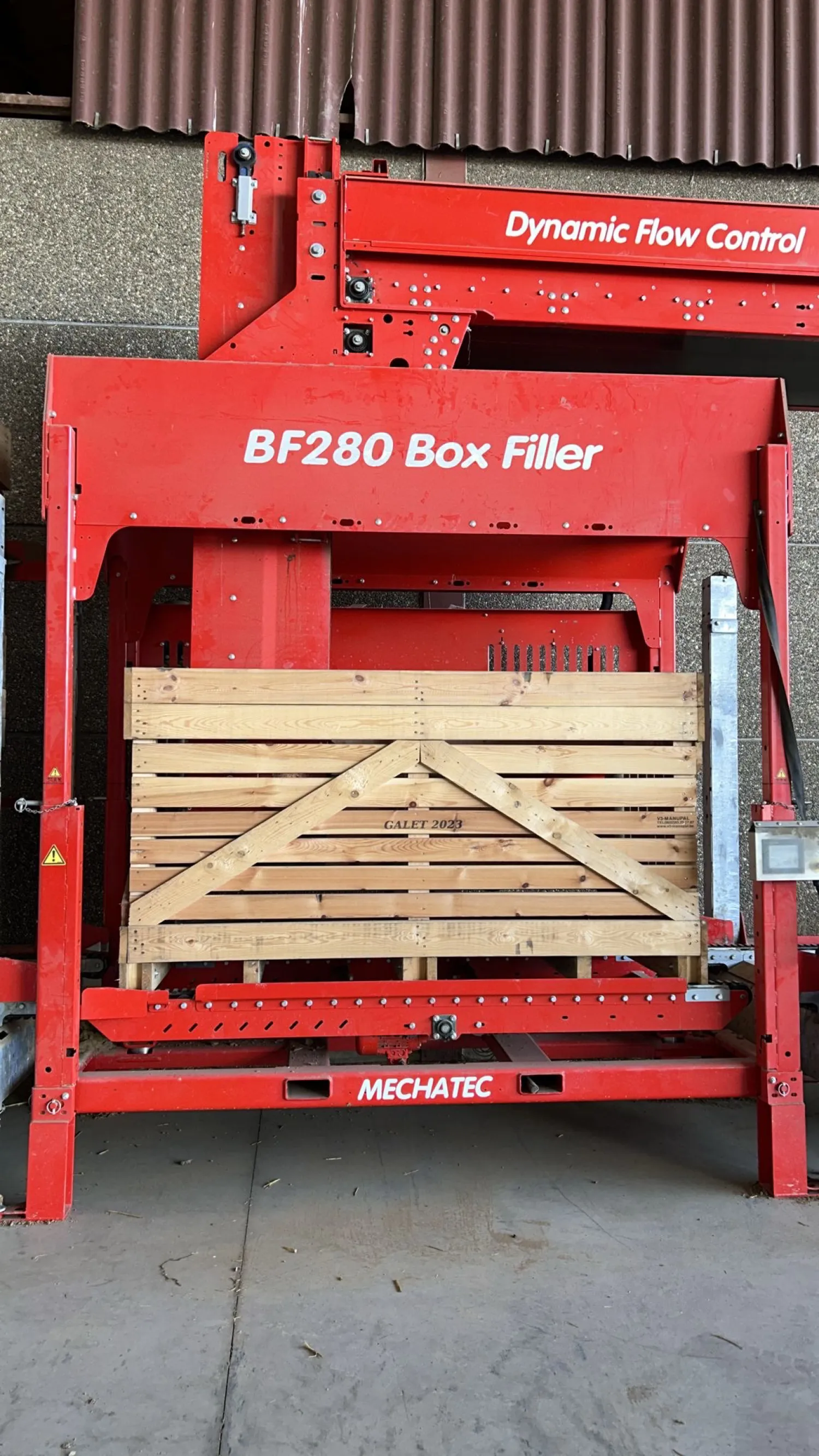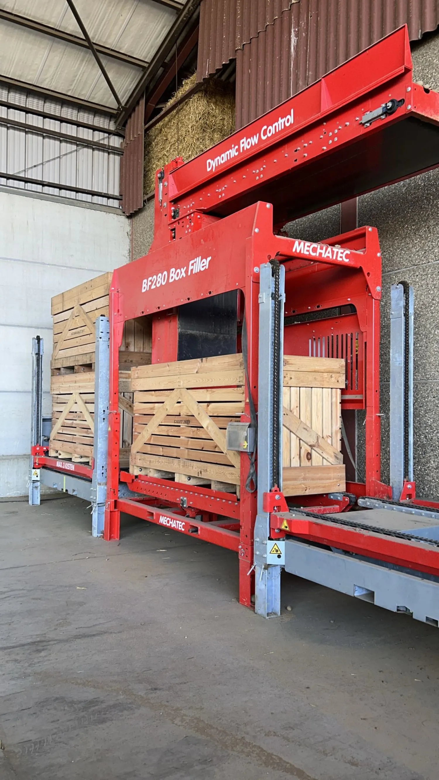 BF280 kistenvuller met modulaire stapelaars geschikt voor 2.4 mtr kisten. Capaciteit tot 100t/u Vult in meerdere lagen de kist vlak vol af op gewicht of niveau Optimale grondverdediging, daardoor geen stortkegels, schoon steken niet nodig. Geïntegreerd weeg en schudsysteem. Vult ooknplantuien of uien met lange staarten of knolselderij Bel of mail voor info met Henk Petter 0651547338 of henkpetter@mechatec.nl