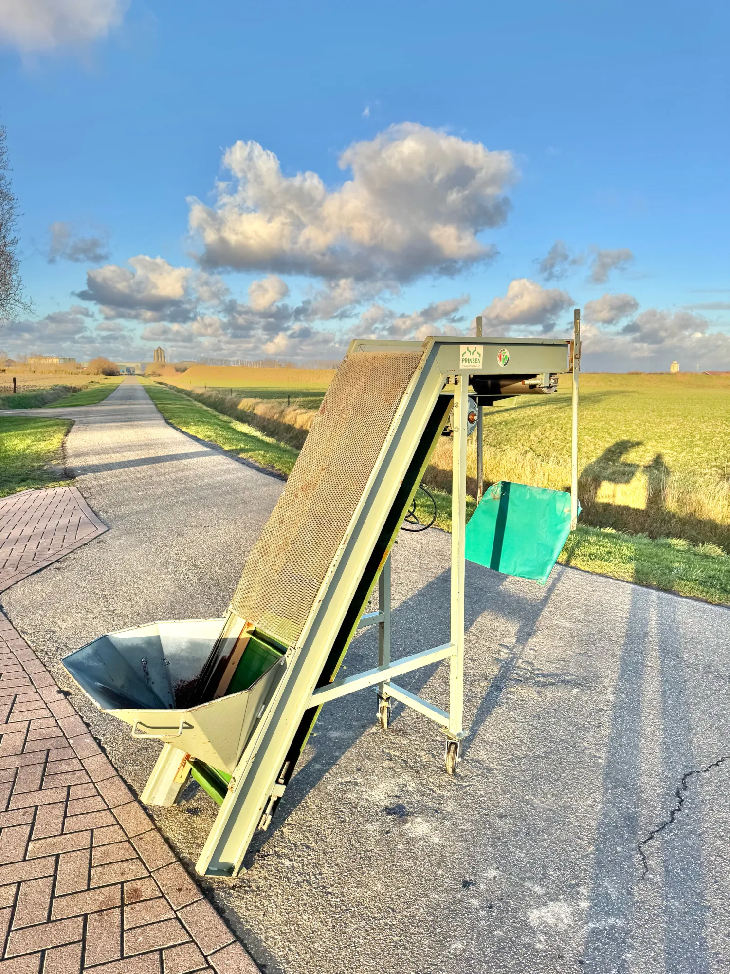 Langhout KVB 40 Kistenvulband met automatische valbreker Merk: Langhout Type: KVB 40 Meenemers 40mm Voorzien van Interroll trommelmotor Automatische valbreker Zwenkwielen zwenkbaar 24/7 bereikbaar op +31639127902 Transport en inruil mogelijk Tevens ook landbouwmachines gevraagd! Website: Dga Machinehandel Dga Machinehandel Langeslikweg 2 4301RK Zierikzee