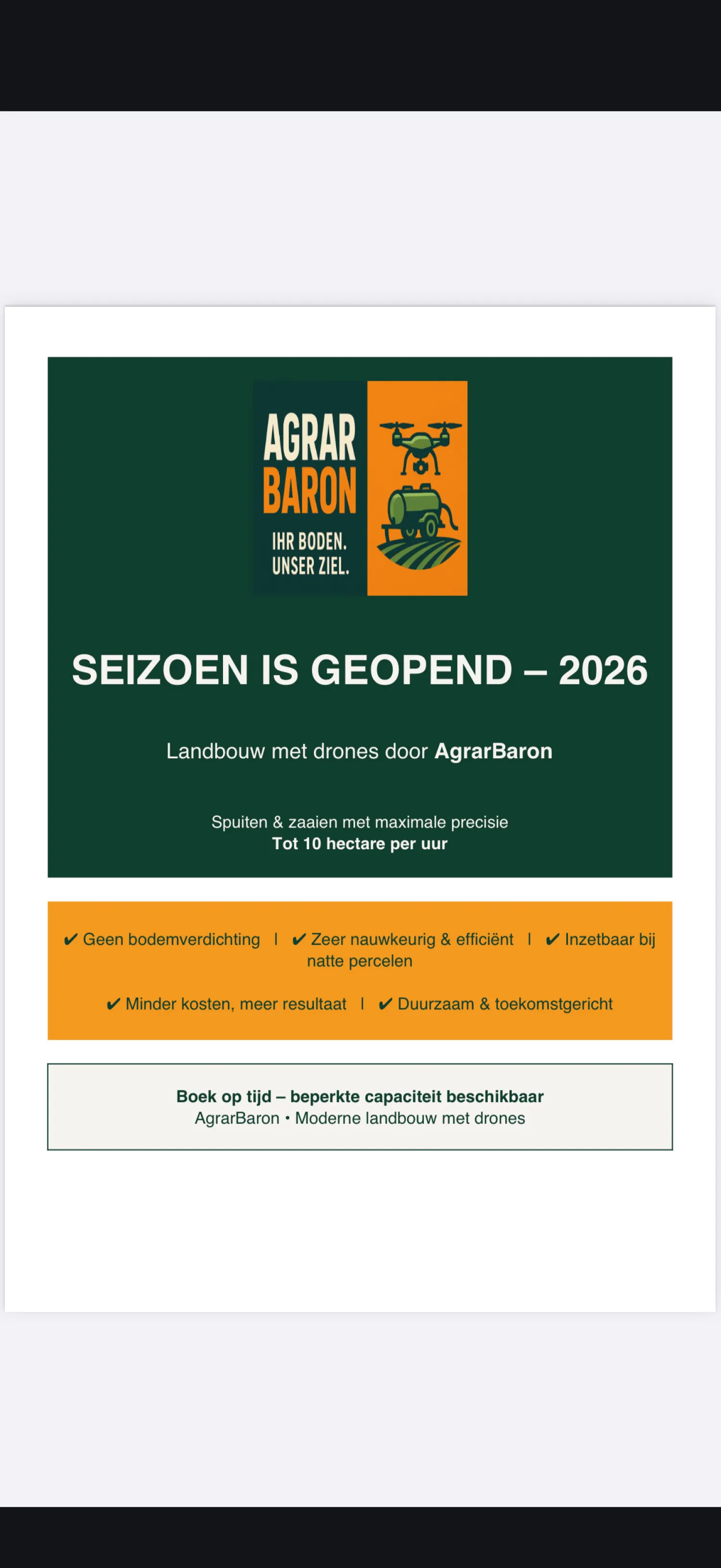 Drohnen seizoen is geopend Zaaien , spuiten ! Voor meer info graag per whatsapp