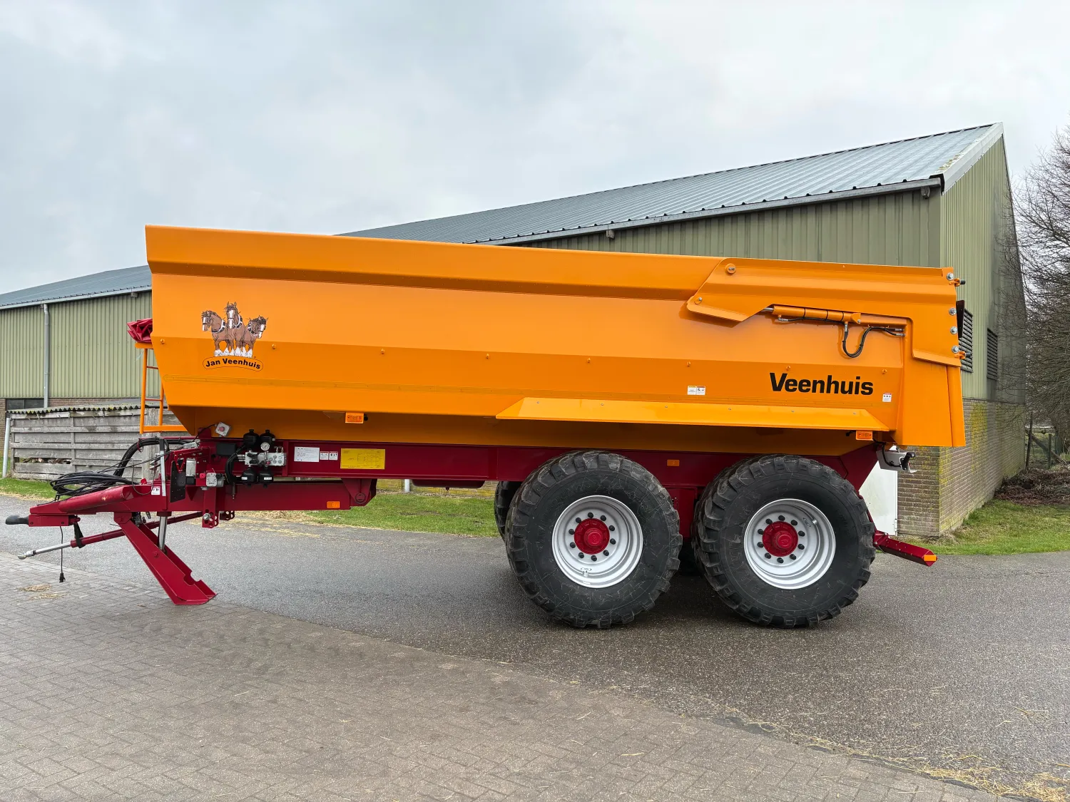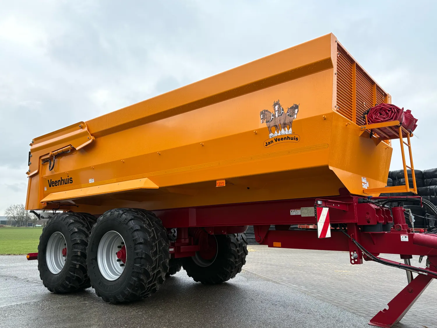 Nieuwe overjaarse Veenhuis JVK 16000. Bouwjaar 2022. Bakinhoud: 18M3 Alliance 600/55R26.5 Gedwongen gestuurd, met elektrische uitlijning. K80 trekhaak met K50 t.b.v. de besturing. Lucht geremd. Hydraulische klep met graanluik. Groot doorkijkrooster voor, met losse graanplaat. Hydraulische steunpoot. Led achter/contour verlichting. Zeilrek met los zeil. NL- Kenteken. Voor meer info en prijs neem gerust telefonisch contact met ons op. Inruil mogelijk.