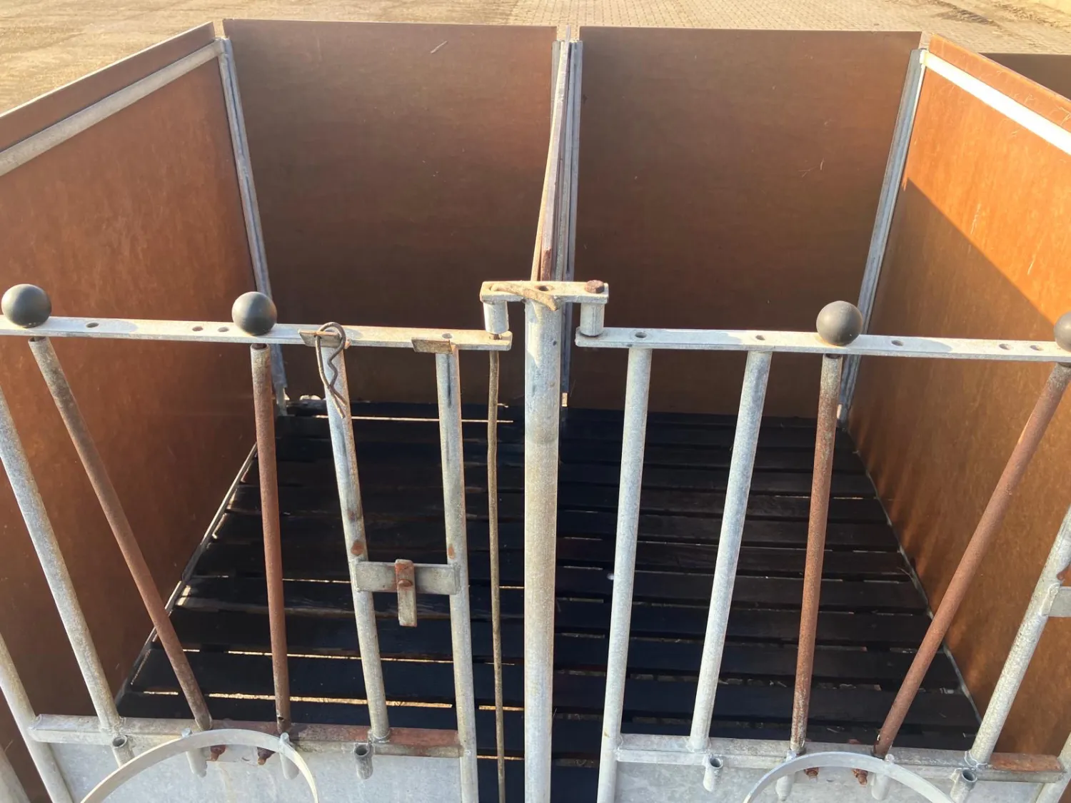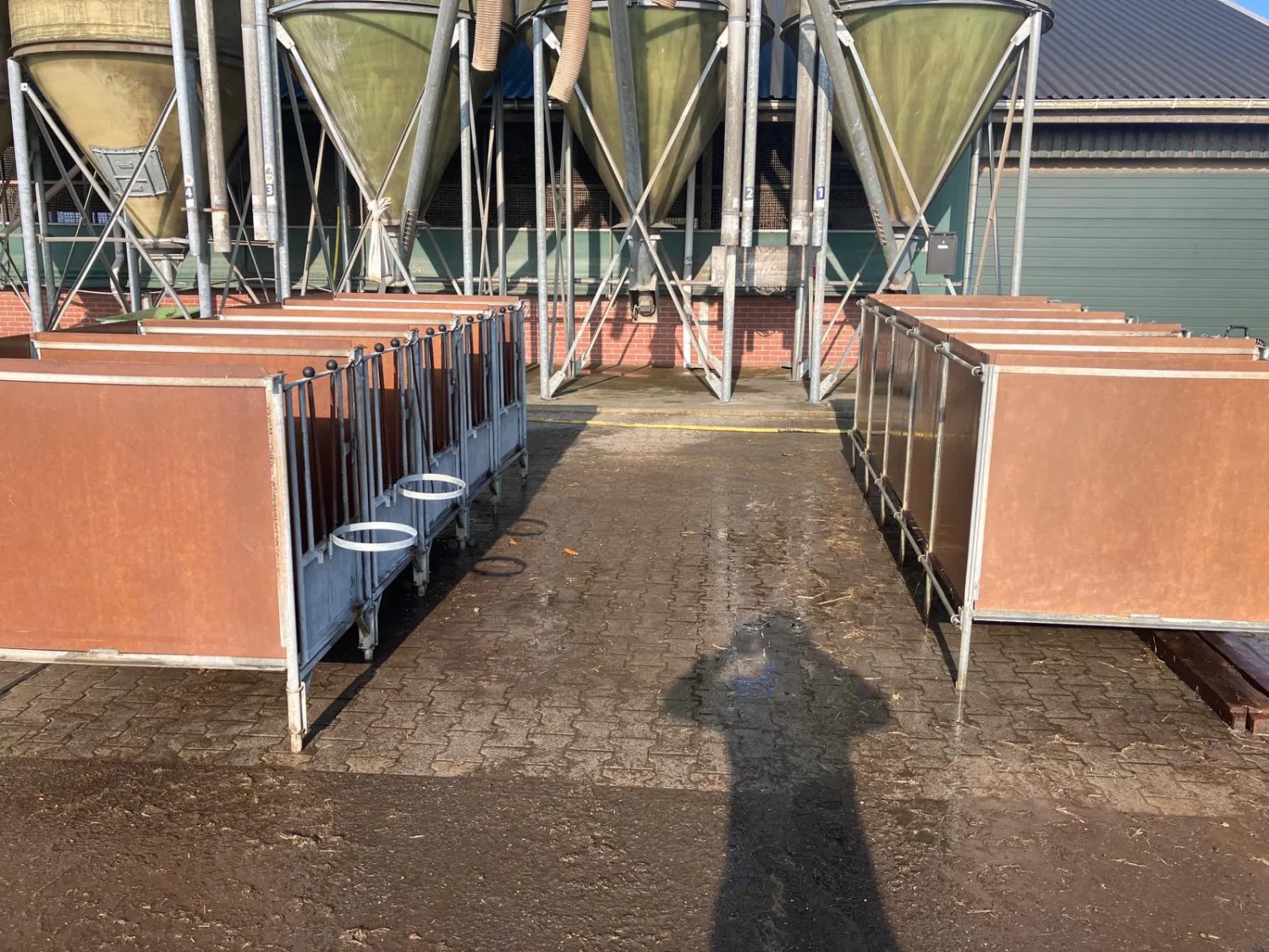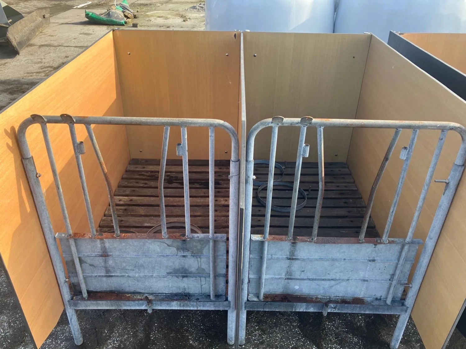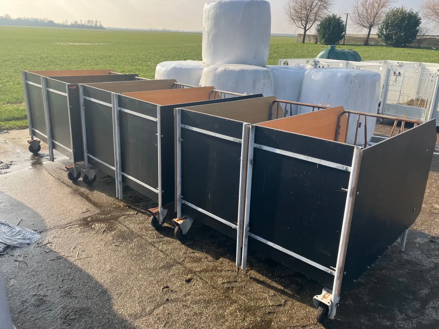 Te koop aangeboden Eenlingboxen 3 setjes van 2 hokjes Verrijdbare hokken Met emmerringen €150 per setje 10 kalverhokken 2 setjes van 5 hokken Met emmerring €500 per setje