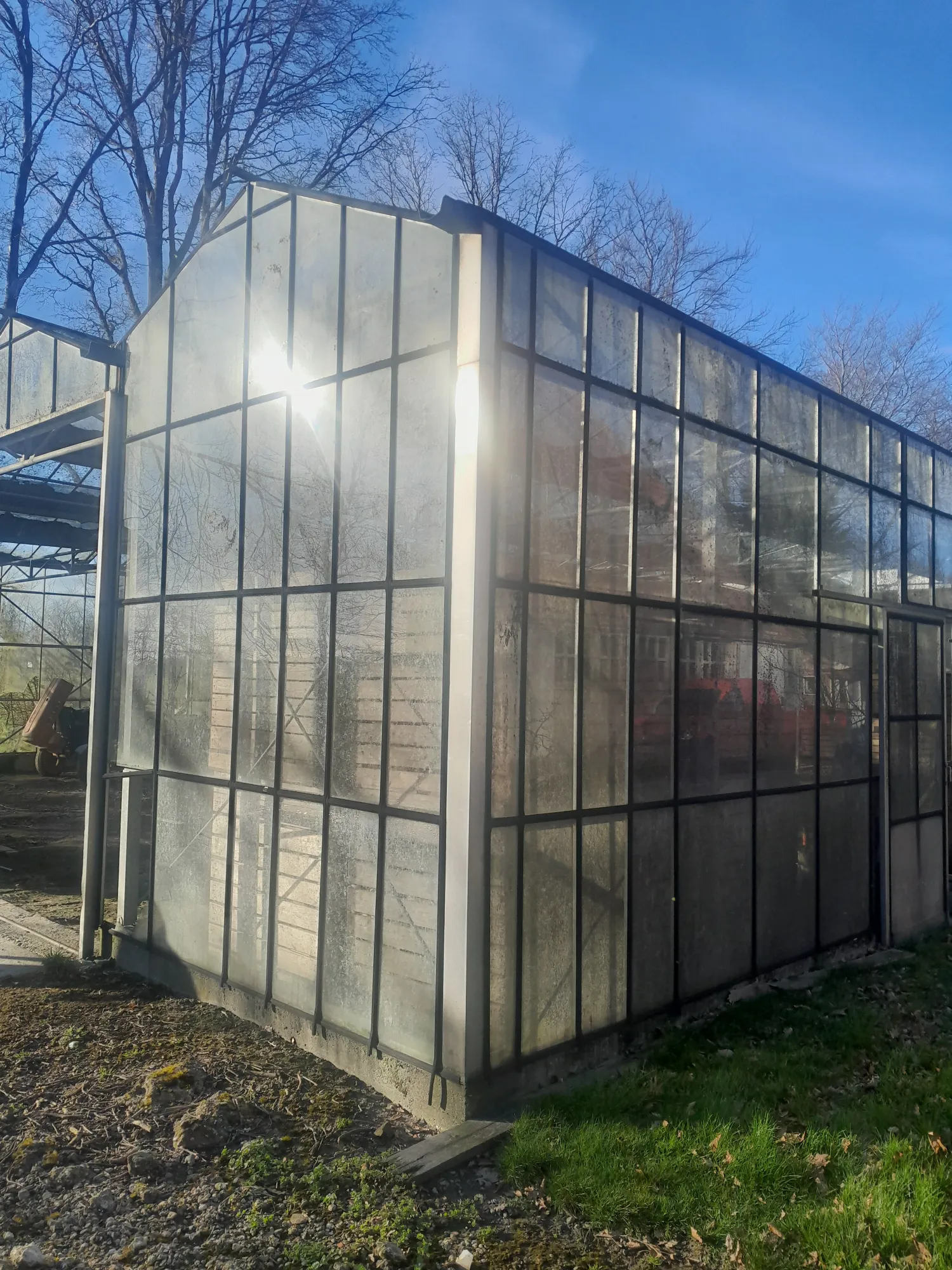 Te koop kas ca 525m² Enkel glas 2 schuifdeuren Gegalvaniseerd frame Zelf demonteren