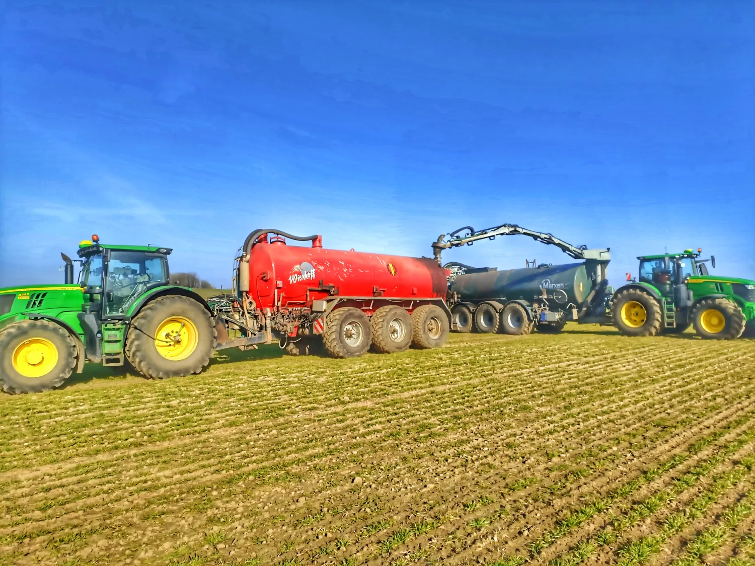 Moin, habe noch freie Kapazitäten in Sachen Gülle- und Gärrestausbringung. Ausbringfahrzeug mit bodenschonender Bereifung und 36m Schleppschlauchgestänge (Teilbreiten natürlich möglich) + Zubringerfahrzeuge. Preis gerne auf Anfrage, auch gerne via WhatsApp. Mfg