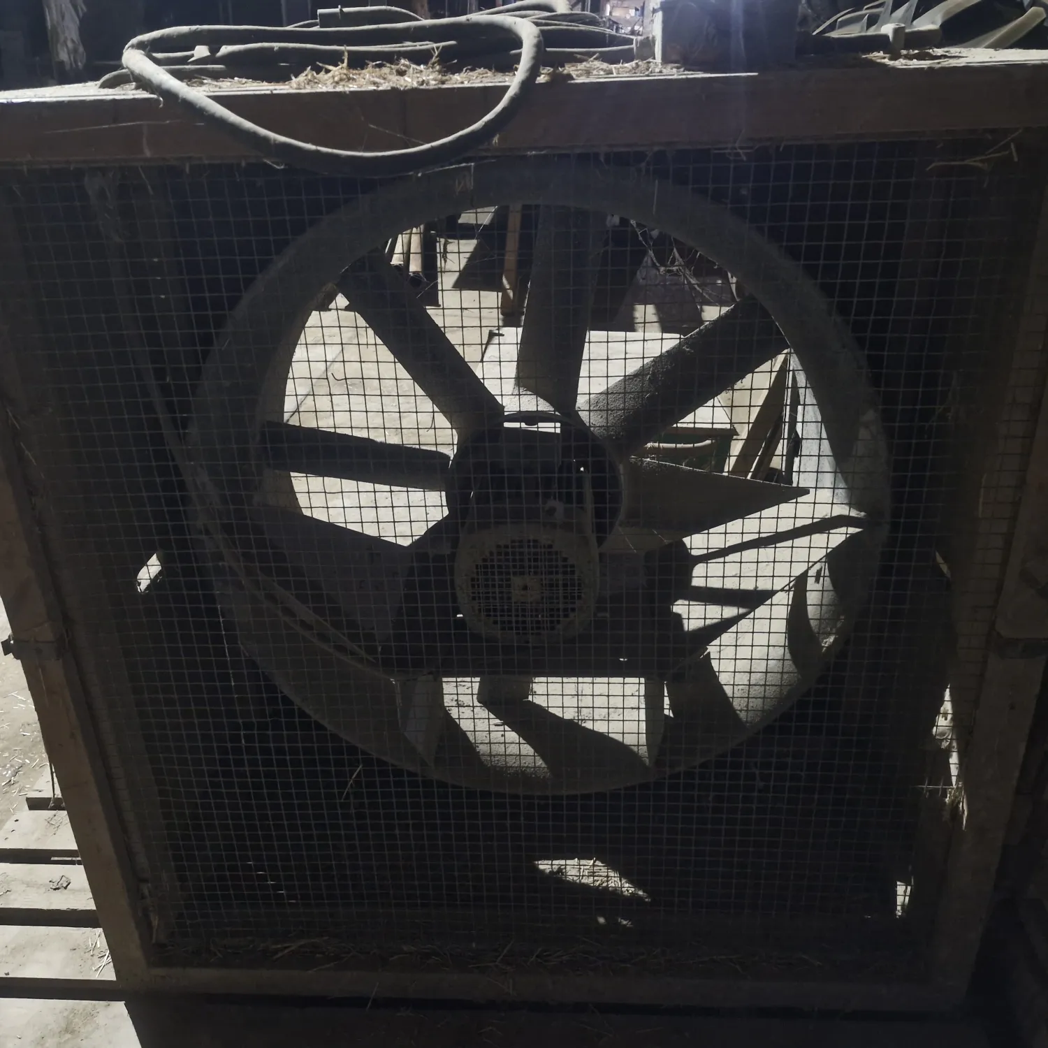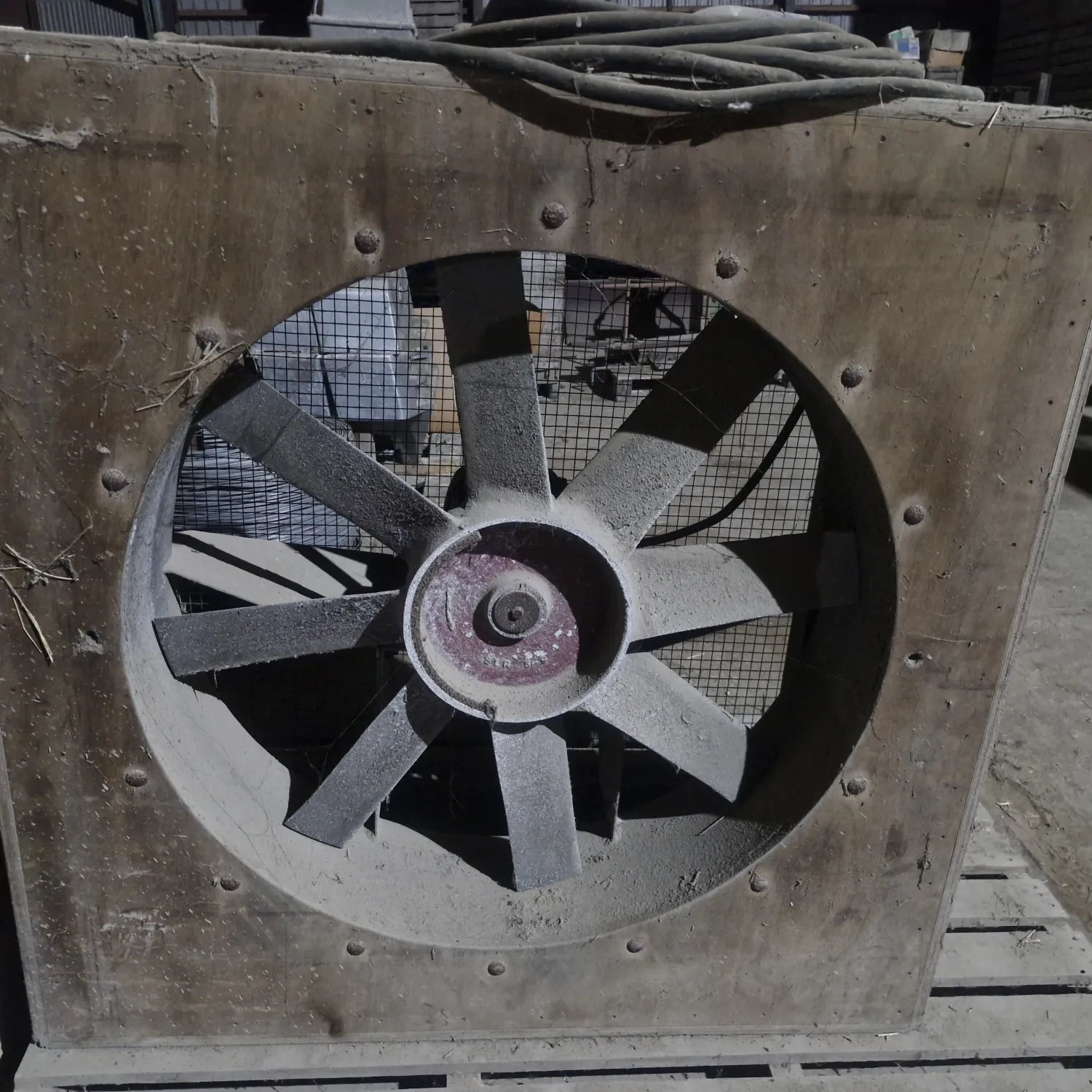 Aardappel ventilator, 5pk, nooit mee gegast, ster/driehoek schakeling. Houten omkasting 120x120cm, rotor 90cm.