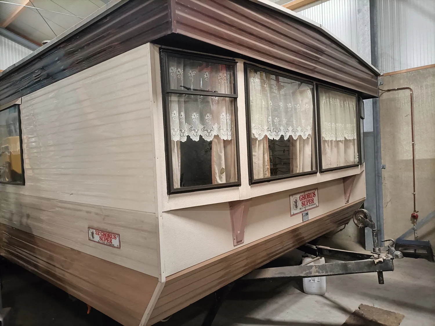 Aangeboden stacaravan merk Atlas 10 mtr lang x 3.70 breed Nette wooneenheid staat binnen. Met Intergas ketel Koelkast Vrieskast Gaskookplaat 2 slaapkamers Badkamer