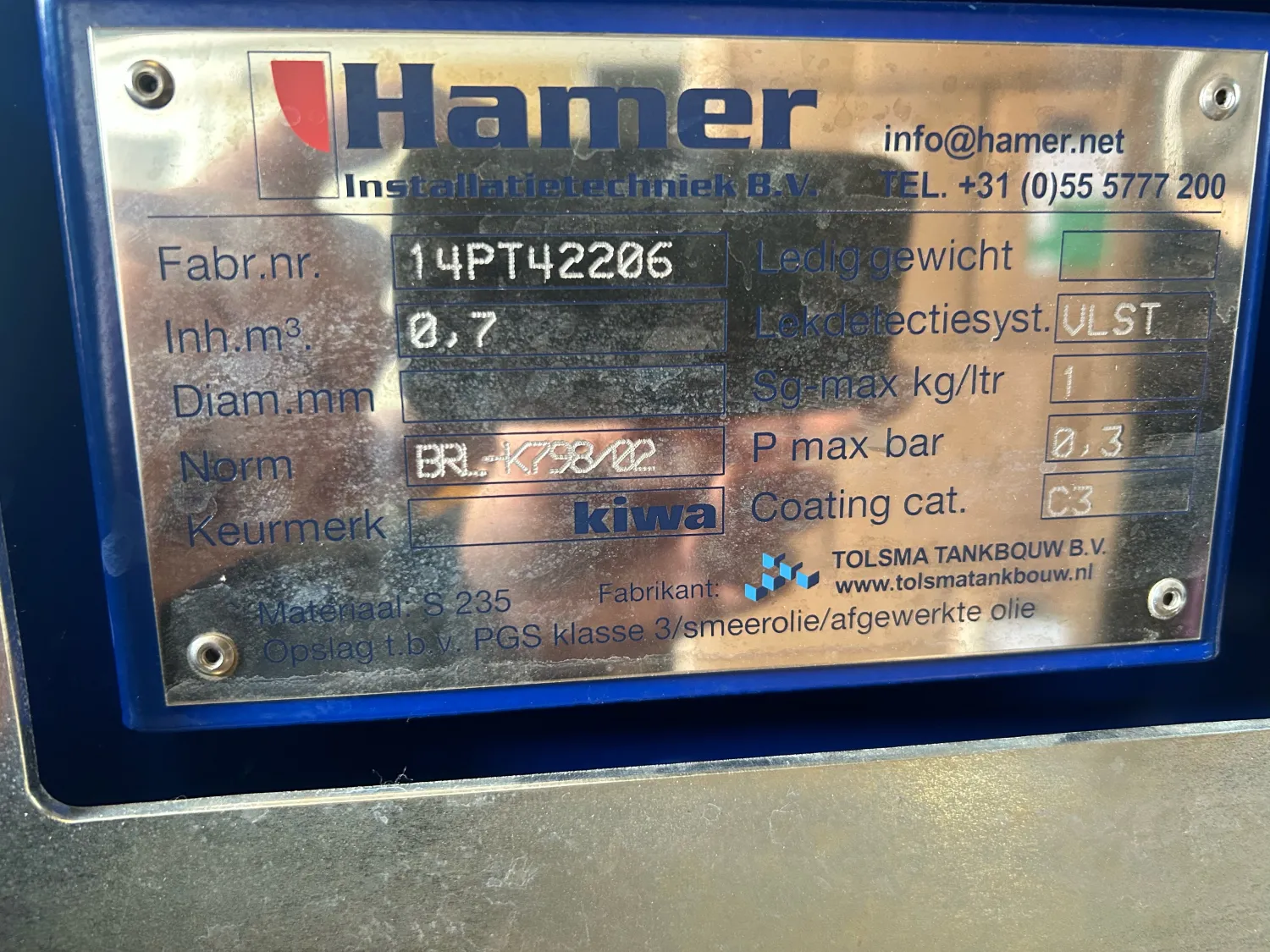 Diesel/benzine tank 700 liter