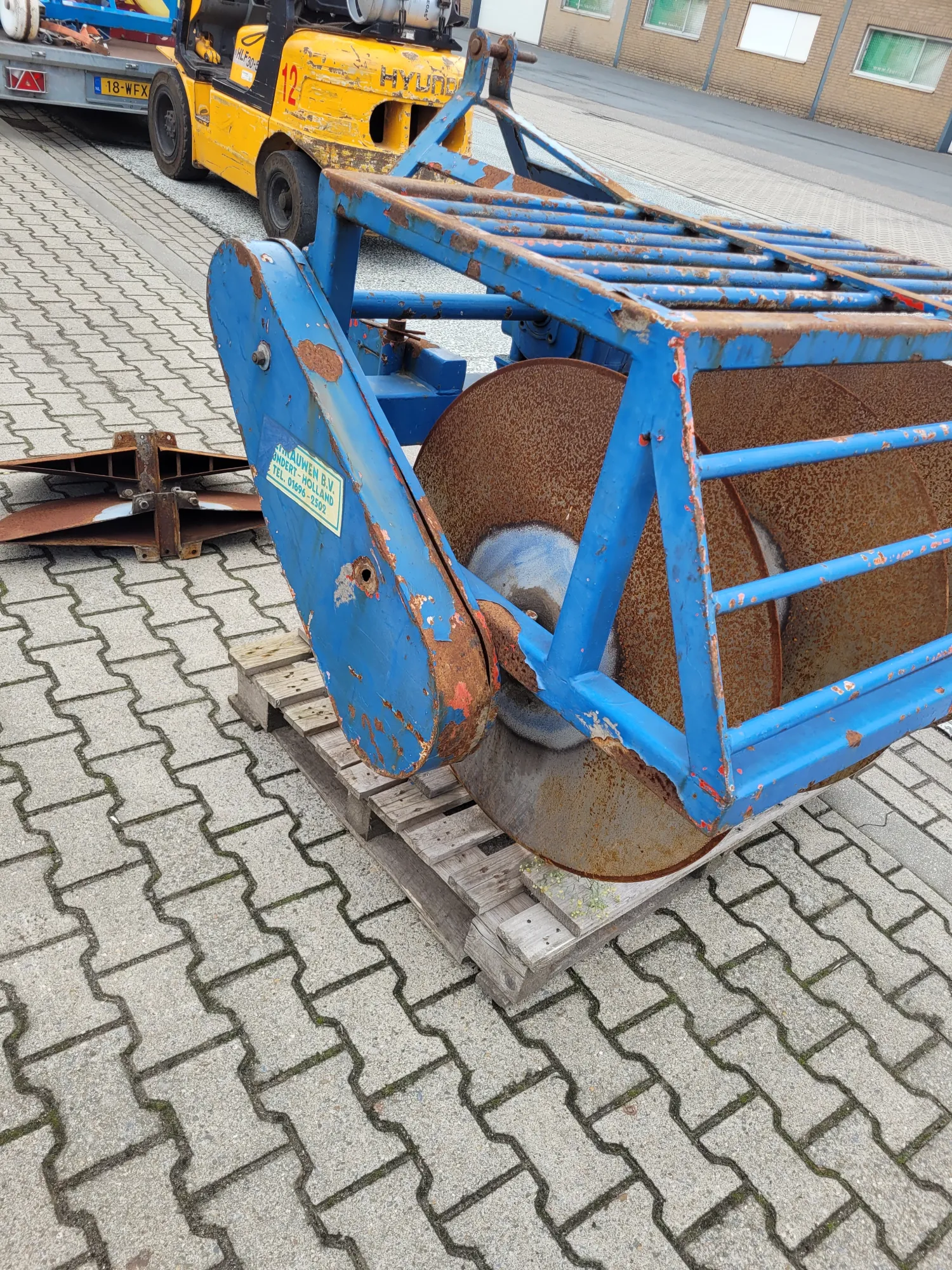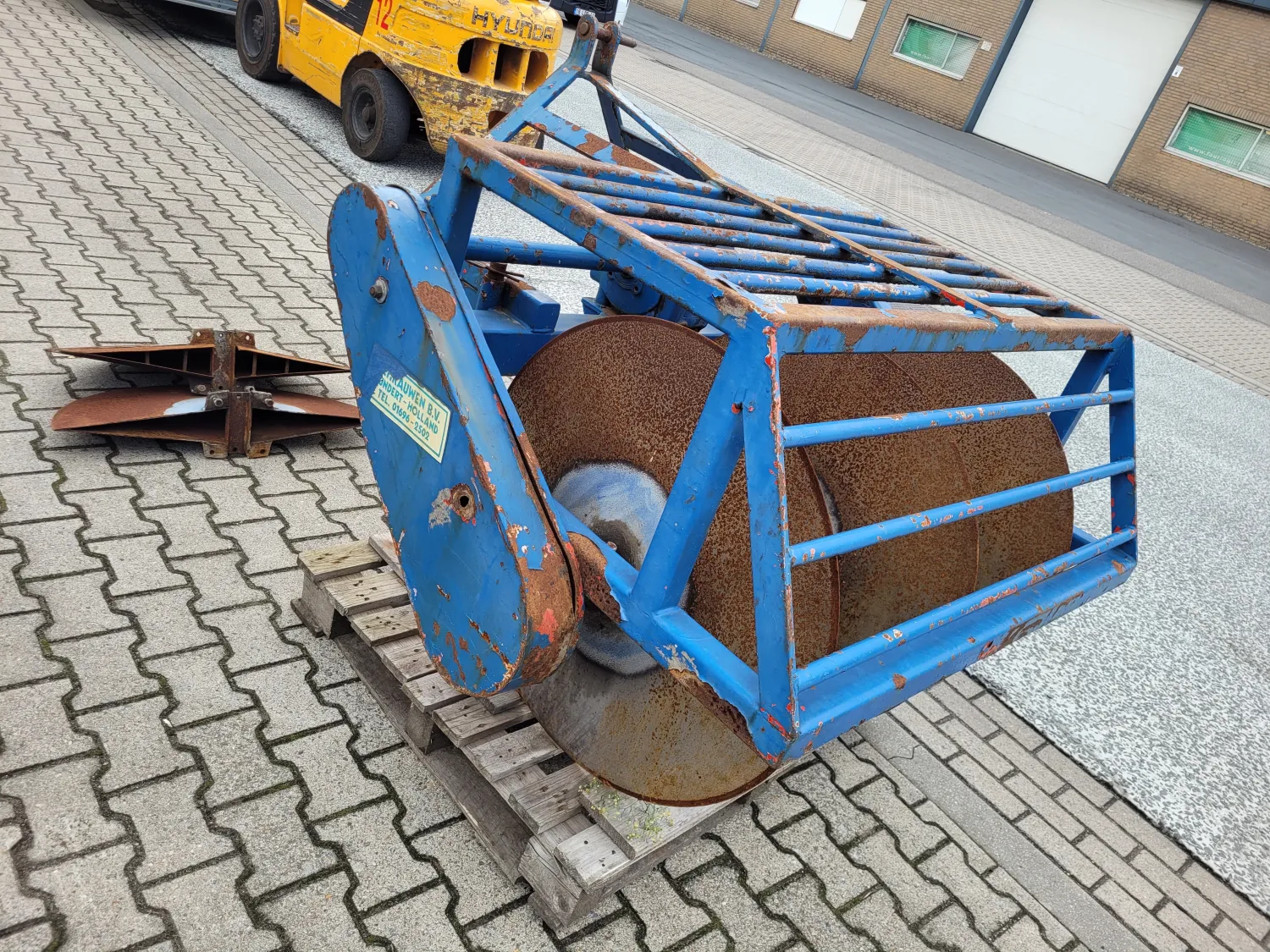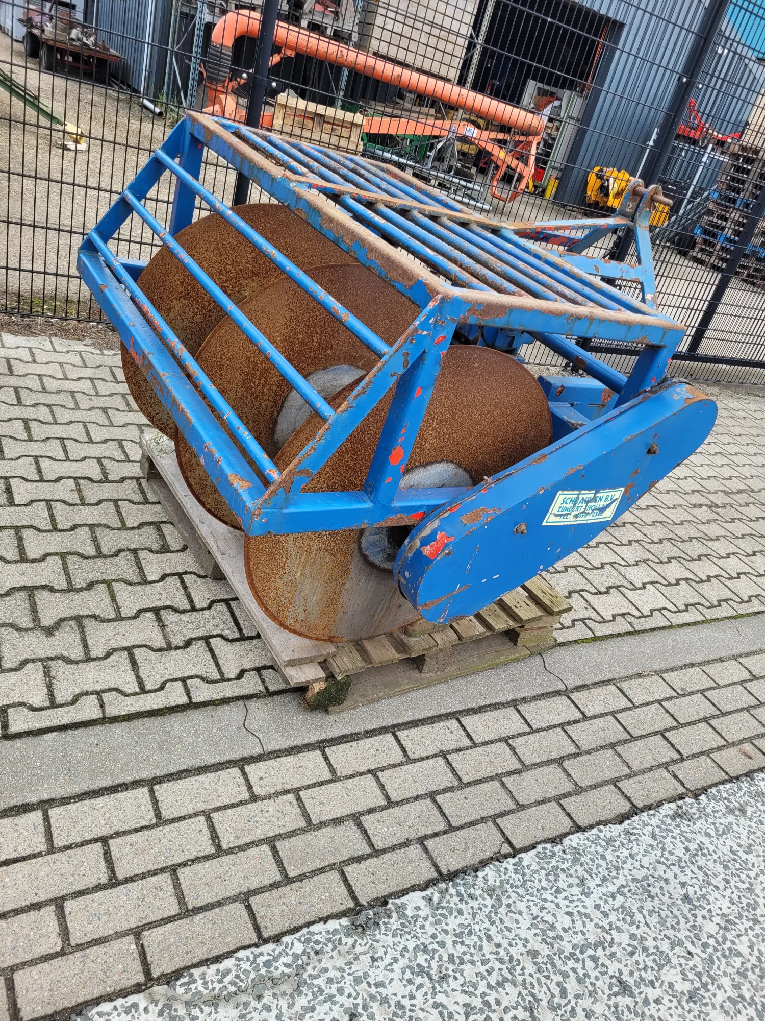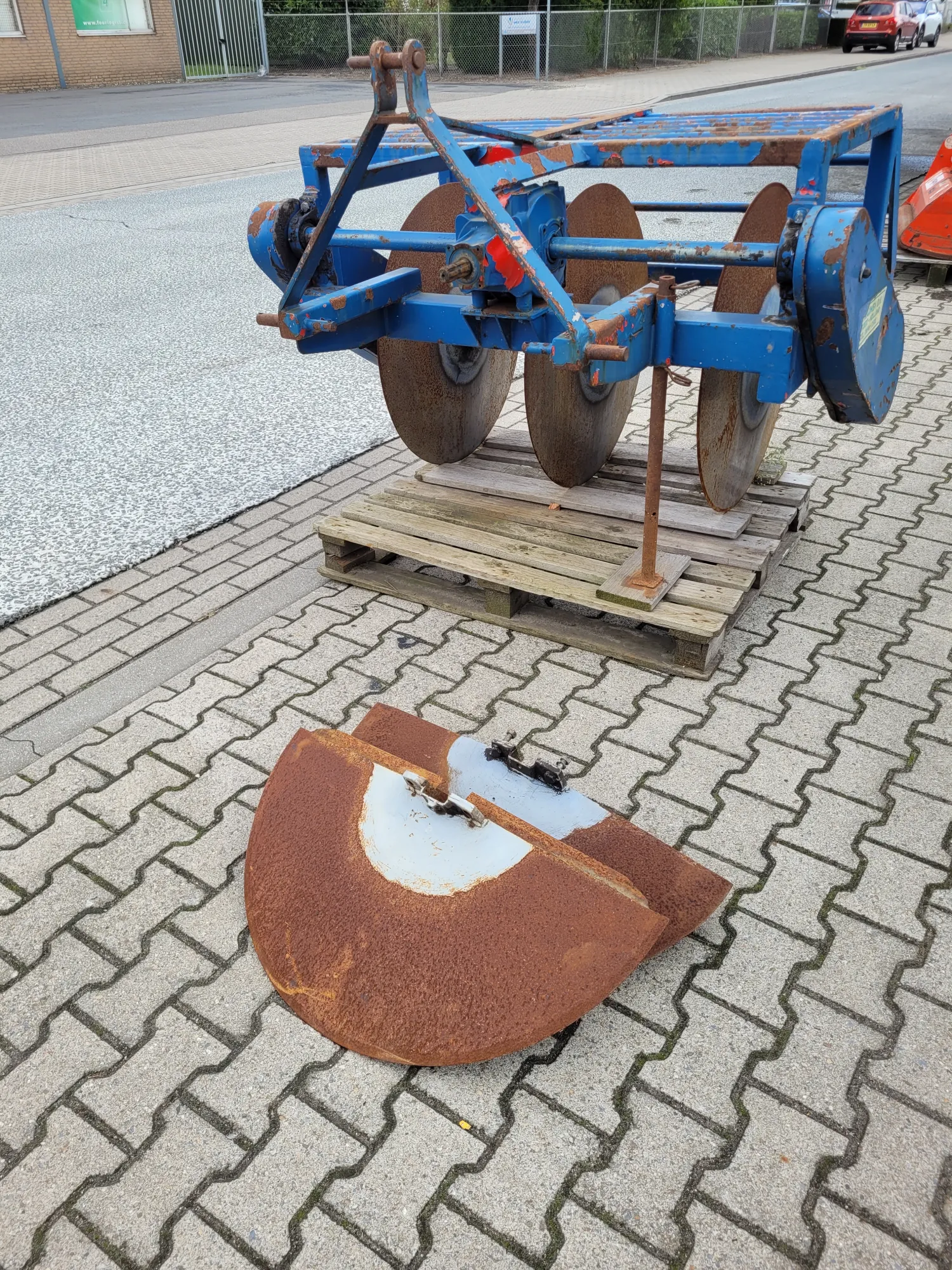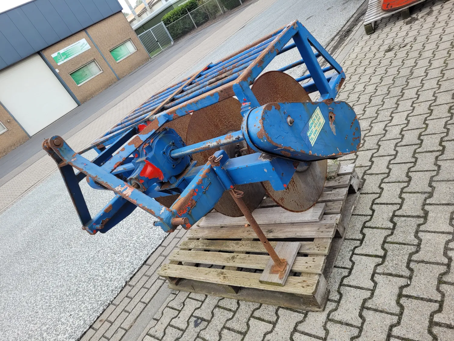 Sleuventrekker aangedreven. Schijven ongeveer 85 cm doorsnede. 5 schijven.