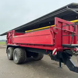 Mooie Miedema HST80 met opschorten. BJ 1985 - lekvrije cilinder en goede bodem. - zijlenrek. - touwhaken. - graanluik. - Frans achterschot - hydrolische steunpoot. - werkende verlichting. - tandemasser. - spoor 150cm. - kenteken. - trekhaak. - netjes en goed onderhouden.