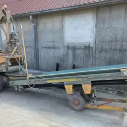 Goed werkende opscheppen machine. Met ribbelmat voor uien. Kar die erbij hoort ook te koop.