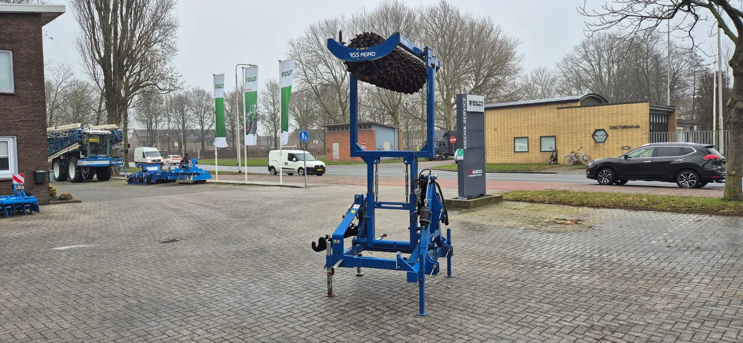 Gebruikte VSS Agro frontvorenpakker, bouwjaar 2018 - Frontpakkerarm t.b.v. links en rechts gebruik naast de trekker d.m.v. een wentelcilinder - Werkbreedte ca. 200cm - Cross-Kill ringen met een diameter van 550mm - Voorzien van extra aankoppelbok t.b.v. extra frontgewicht tot max 1000kg - Mechanische transport vergrendeling