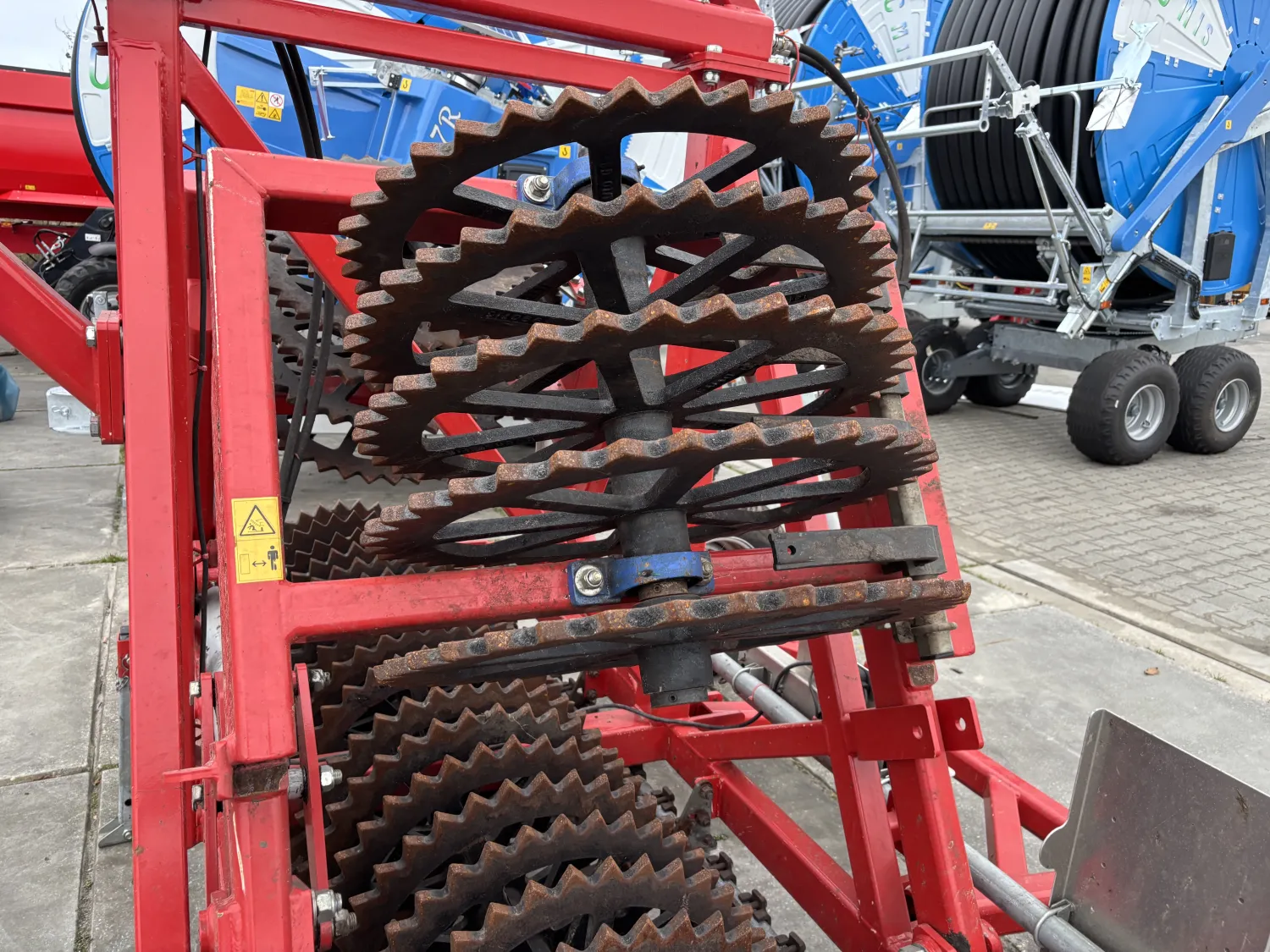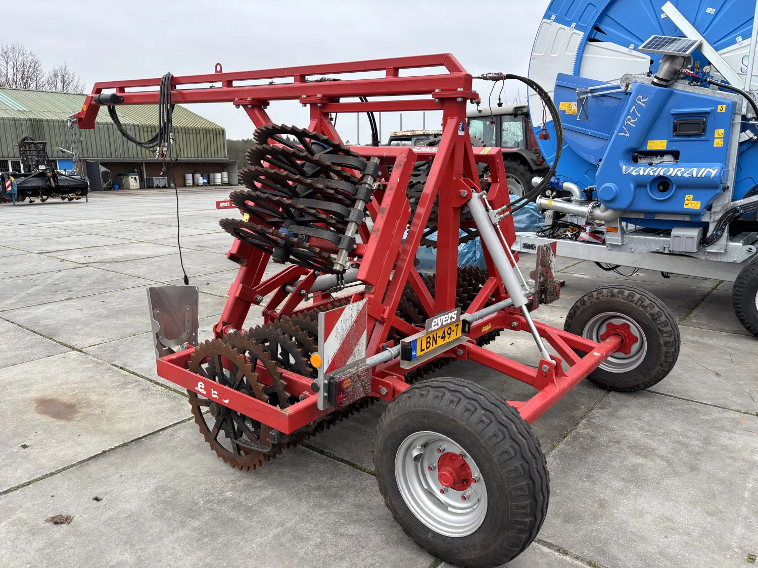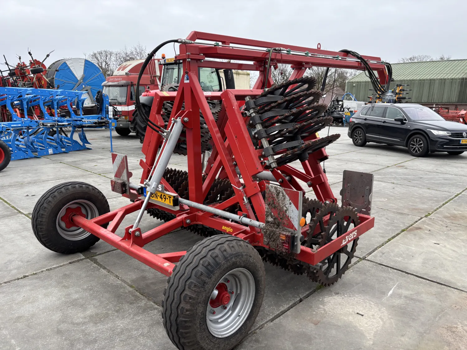 Brede Evers Anglo HVK60-30 getand 72 cm getrokken vorenpakker: - Machine hydraulisch opklapbaar - 30 getande ringen Ø 72 cm - Ringen h.o.h 125 mm - Werkbreedte 375 cm - Transportbreedte 280 cm - Met transportwielen - Verlenging 75 cm voorzijde trekboom inclusief flensplaat t.b.v. trekkoppeling - K80 trekoog - Verlichting en borden voor- en achterzijde Machine voorzien van RDW keuring - Inclusief gekeurde K80 koppeling - Voorzien van uitbreekbeveiliging - Voorzien geleverd met kenteken - Machine geschikt voor 40 km\h Prijs €14.750 Excl. BTW Neem contact met ons op voor meer informatie of een bezichtiging.