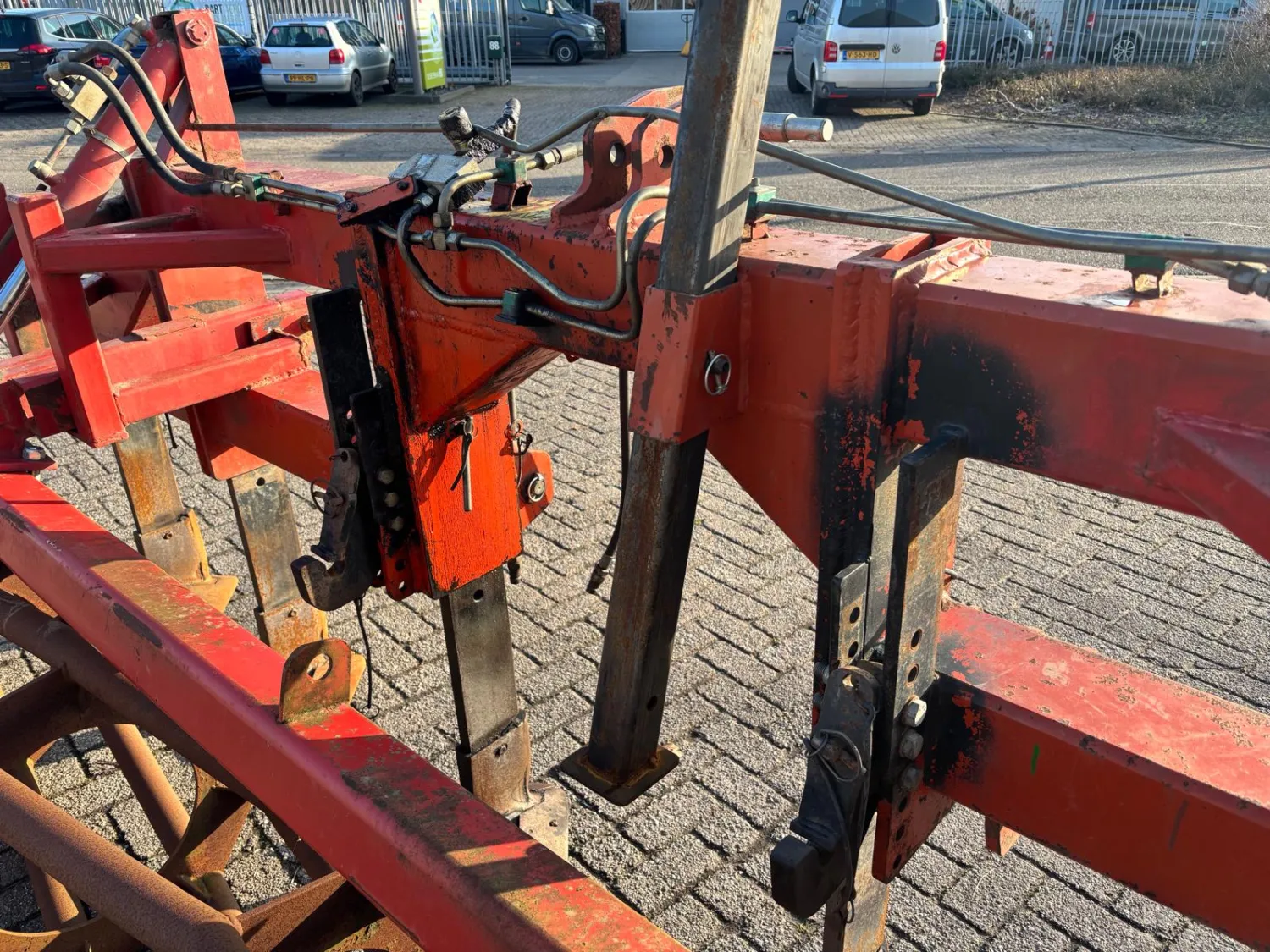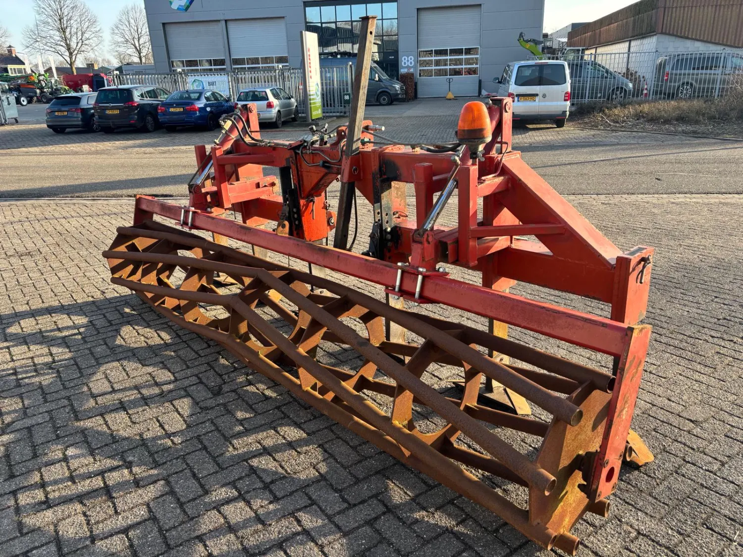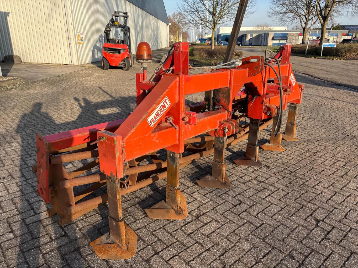 Fradent voorzetwoeler - Werkbreedte: 4,00 meter - 6 tanden, met pen-gat in diepte te verstellen - Aftakas doorlaat - Mechanische hefinrichting - Kooirol met hydraulische diepteregeling - Koorol te demonteren om te gebruiken als voorzetwoeler