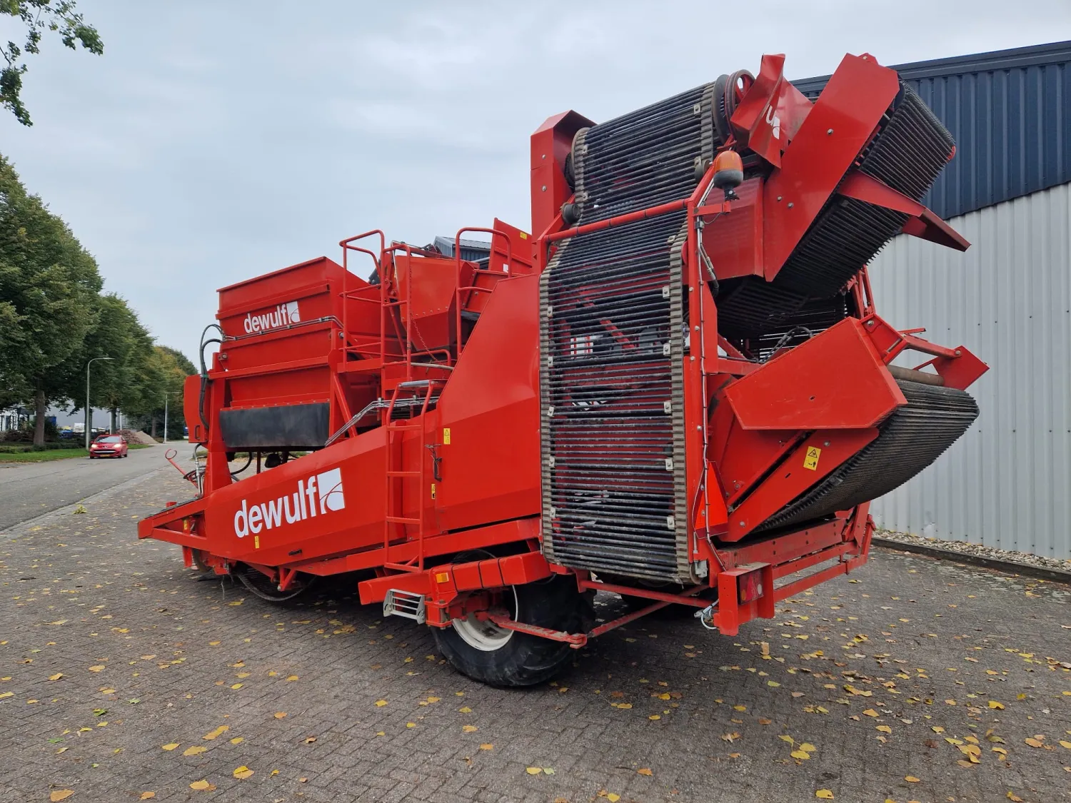 Dewulf RDT aardappelrooier Prijs: €48.500,- - Bouwjaar: 2017 - Trelleborg 600/55-26,5 banden - Diabolorollen - 1e zeefband: steek 36 staal met 2 excentrische kloppers - 2e zeefband steek 40 rubber - 3e zeefband steek 40 rubber - 2 loofrollen met loofhaken - Egelband onder hydraulisch verstelbaar, h profiel stap 40 - Omloopband steek 35 rubber - Egelband boven hydraulisch verstelbaar, h profiel stap 40 - Bunker 8m3 inhoud - Bedieningskast - Gestuurde wielen - Hydraulische vlakstelling - Hydraulische dissel