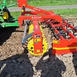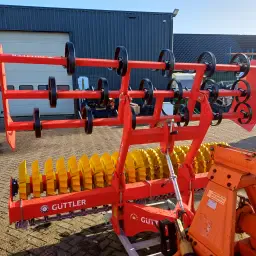 Güttler SuperMaxx Triltandcultivator met smalle beitels en ganzevoetscharen voor volledig afsnijden Loopwielen aan voor -en achterzijde mogelijk Snel en oppervlakkig werken Demo beschikbaar