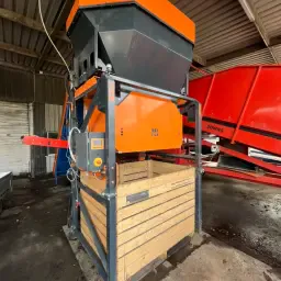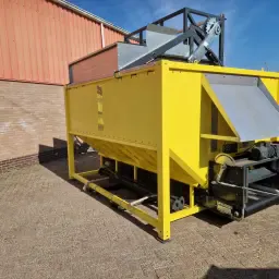 Rb bunker kantelaar - bouwjaar 2024 - in hoogte verstelbaar - valbreker - 6/7 ton inhoud - afstandsbediening vanaf heftruck - hydraulische kantelaar - onderlosband 2 zijde op