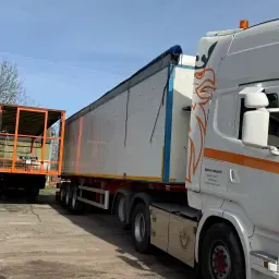 Te koop happy roller bandlosser met nieuw laten bouwen Draco chassis zeer zwaar uitgevoerd. De bak is met ventilator 240 hoog en 13 meter lang. Zit nieuw kleed op. Vraag prijs 29.750 ex Mvg Hendrik Sijtsma