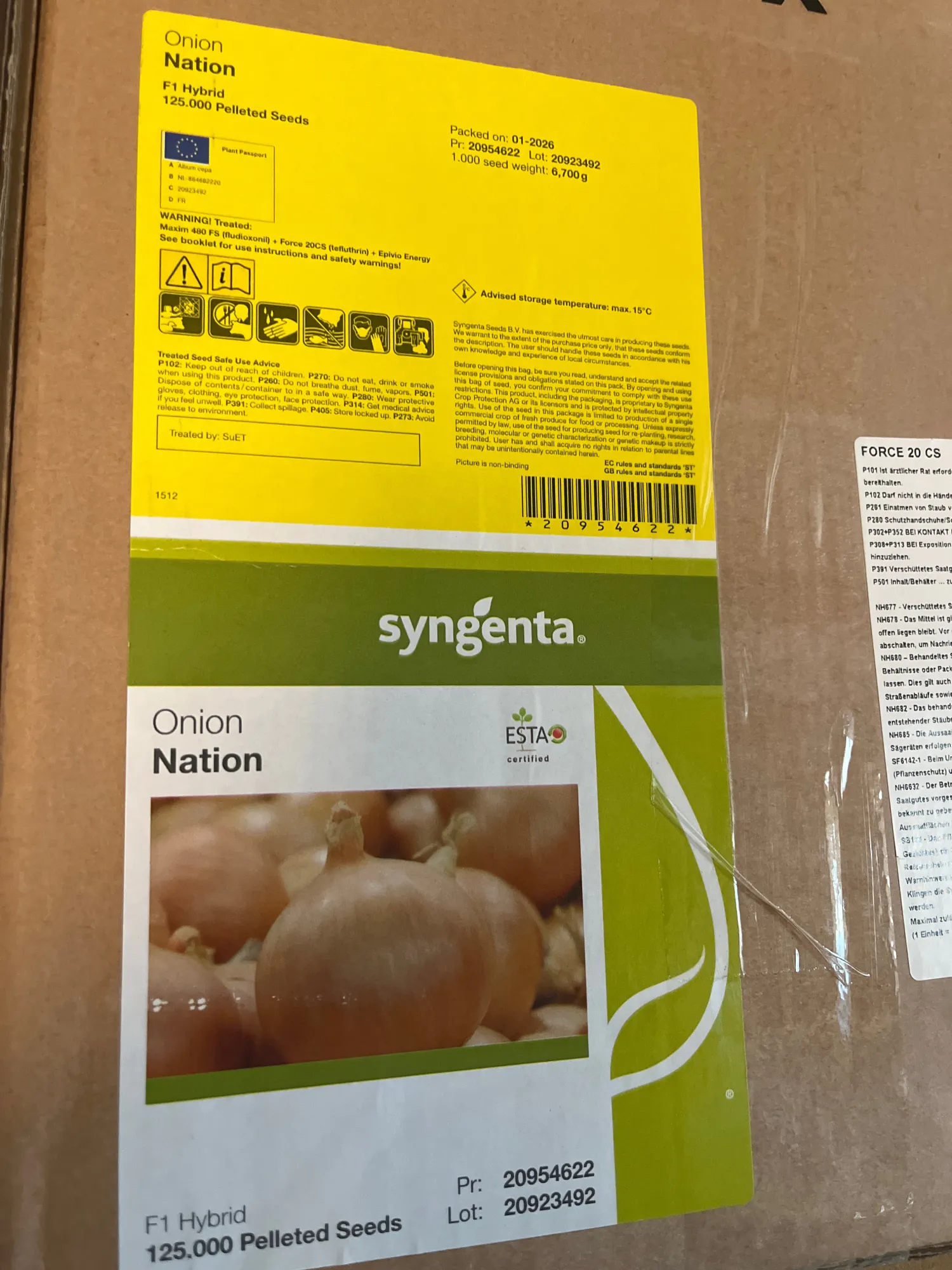 Zwiebel Saatgut Sorte Nation 10 EH (20*125 tsd Korn) Mit Force (Neues Saatgut, kein Altbestand)